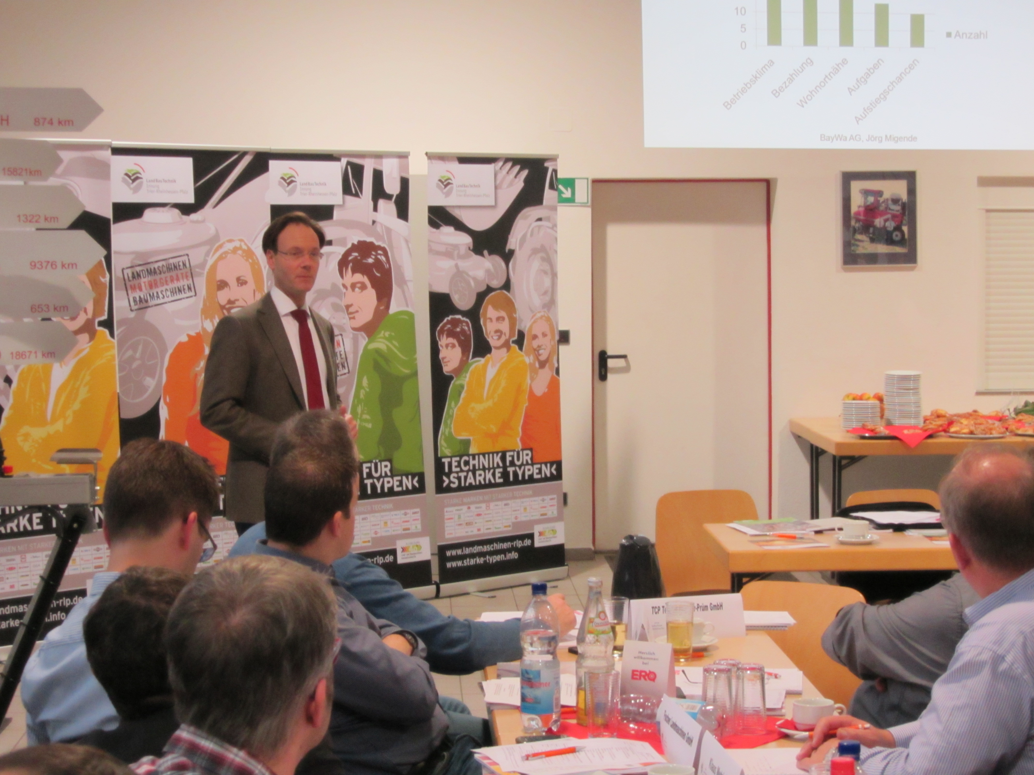 Die diesjährige Hauptversammlung der Innung am Freitag, den 12.12.2014 bei ERO in Niederkumbd/Hunsrück bot für die Teilnehmer ein äußerst informatives Programm. Schwerpunkt war das Thema „Fachkräfte- und Nachwuchssicherung.“ Hierzu referierte die Geschäftsbereichsleiterin „Berufsbildung“ der HWK Pfalz, Rita Petry und zeigte den Mitgliedern auf, wie sie sich als Arbeitgeber attraktiv nach Außen darstellen und den potentiellen Azubis und Mitarbeitern präsentieren können. Anschließend informierte Jörg Migende, stv. Leiter Sparte Technik / Leiter Spartenentwicklung, BayWa AG und Mitglied des Bundesvorstandes LandBauTechnik über das wichtige Thema „Gute Mitarbeiter – Schlüssel zum Erfolg.“
