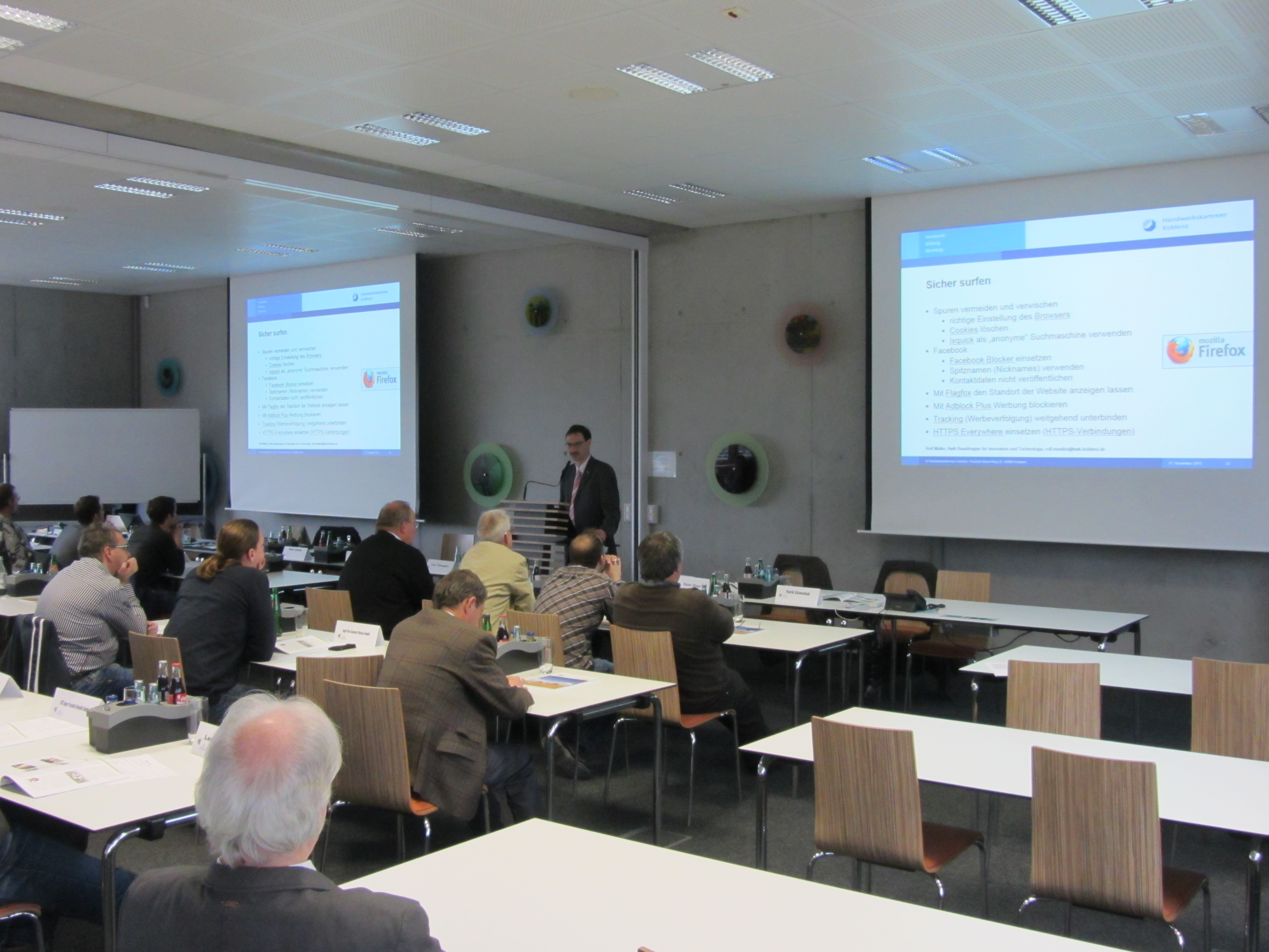 Außer den Vorstandswahlen stand an diesem Nachmittag noch ein interessanter Fachvortrag für die Mitglieder auf dem Programm. Unter dem Motto „Wie sichere ich meine digitalen Juwelen?“ gab Diplom-Ingenieur (FH) Rolf Müller, Technologieberater der HWK Koblenz, Praxistipps zur sicheren und effizienten Nutzung von EDV im Unternehmen.